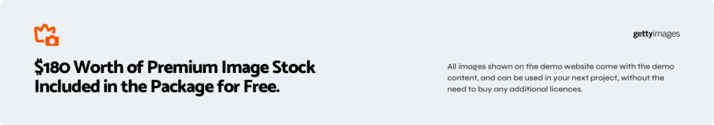 All images shown on the demo website come with the demo content, and can be used in your next project, without the need to buy any additional licences.